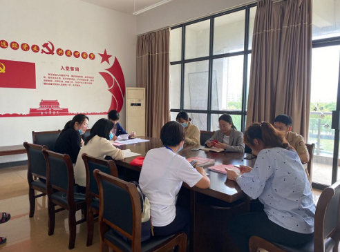 会上,支部为5月份入党的4名党员隆重庆祝“政治生日”。在党员活动室内,全体党员面向鲜红的党旗,郑重宣誓,重温入党初心,回忆入党过程,再一次接受信仰锤炼,坚定初心使命。支部宣传委员杜斐烨老师作为教师代表,在鲜红的党旗面前,重读了自己10年前写的《入党申请书》。教工党员们分享了入党故事,重温入党初心。