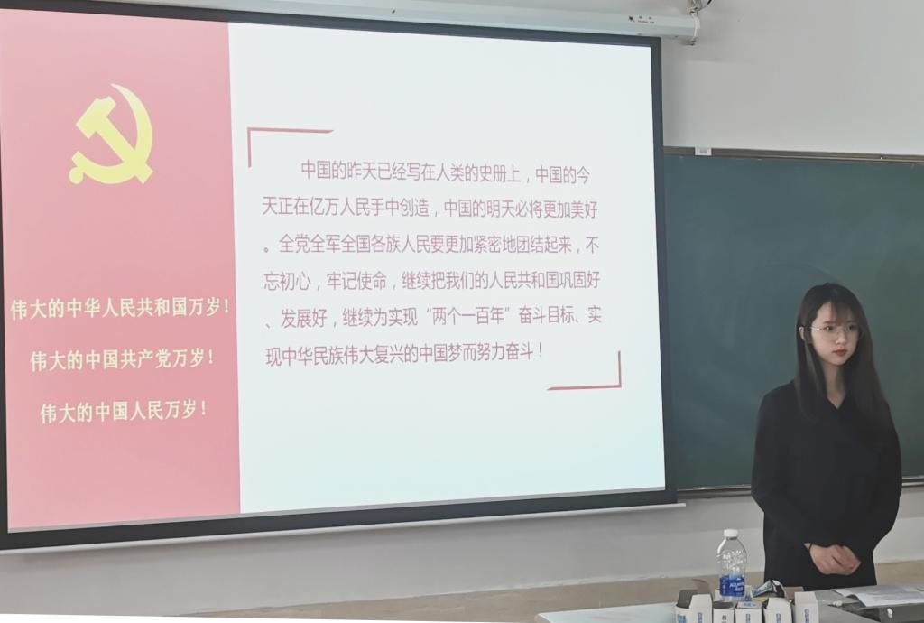 10月15日中午12:30为持续深入学习贯彻习近平新时代中国特色社会主义思想,统计系学生党支部在7幢112教室开展了本学年第一期统学说。本次统学说的主题为“学习《习近平谈治国理政(第三卷)》——谱写新时代中国特色社会主义新篇章”,由预备党员吕洁同志进行分享。