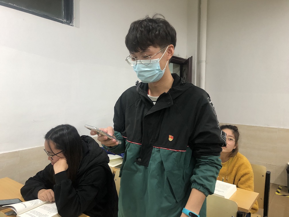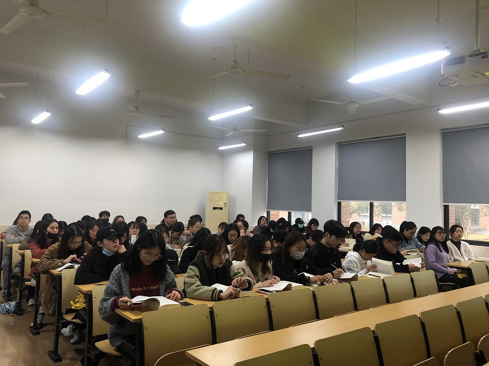 之后工商管理系第二党支部组织委员王超微同志带领大家学习了《陈一新在浙江围绕“十个新”宣讲五中全会精神》,并且围绕十九届五中全会精神开展了专题讨论。汪超怡及曹昊栋两位同学进行了回答与讨论,向大家讲述了他们对于十九届五中全会精神的看法与理解。随后王超微同志带领大家学习全市领导干部会议《认真学习贯彻十九届五中全会精神 奋力谱写社会主义现代化建设新篇章》。接下去便进行学风建设的学习环节,吴桂贤和赵欣敏两位同学进行了学风建设的回答与讨论,向大家讲述了如何做到良好的学风建设。最后进行的是十九届五中全会精神测试,拿到测试卷后大家都奋笔疾书,力求争取一个好成绩。