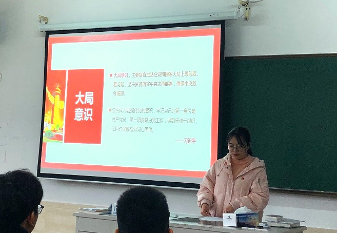 2020年12月8日13:00,经济与信息管理系学生党支部党员、入党积极分子于7-211中午开展了2020-2021学年第一学期第九次微党课。主讲人为预备党员许煌爱同志。