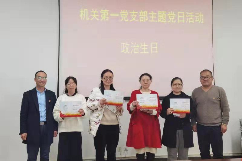 3月25日下午,机关第一党支部在28幢320会议室召开主题党日活动。在活动上传达学习习近平在党史学习教育动员大会上的重要讲话、省市和学院党史学习教育动员部署会精神,为部分党员同志集体过政治生日,观看师德师风相关视频。党委委员、组织部部长张正亮出席会议,机关第一党支部全体成员参加会议,活动由机关第一党支部书记斯亚民主持。