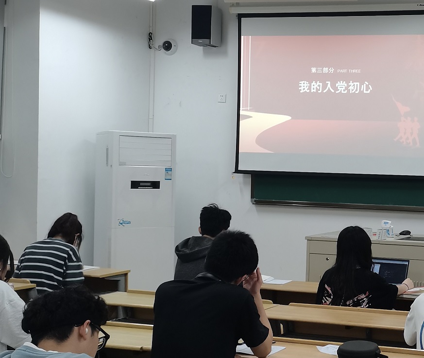 2021年5月6日19:00,经济与信息管理系学生党支部部分党员、20电子商务一班学生于9-319开展了“让有信仰的人将信仰——党员进课堂之我的入党动机”线下宣讲活动。主讲人为中共预备党员林紫莹同志。