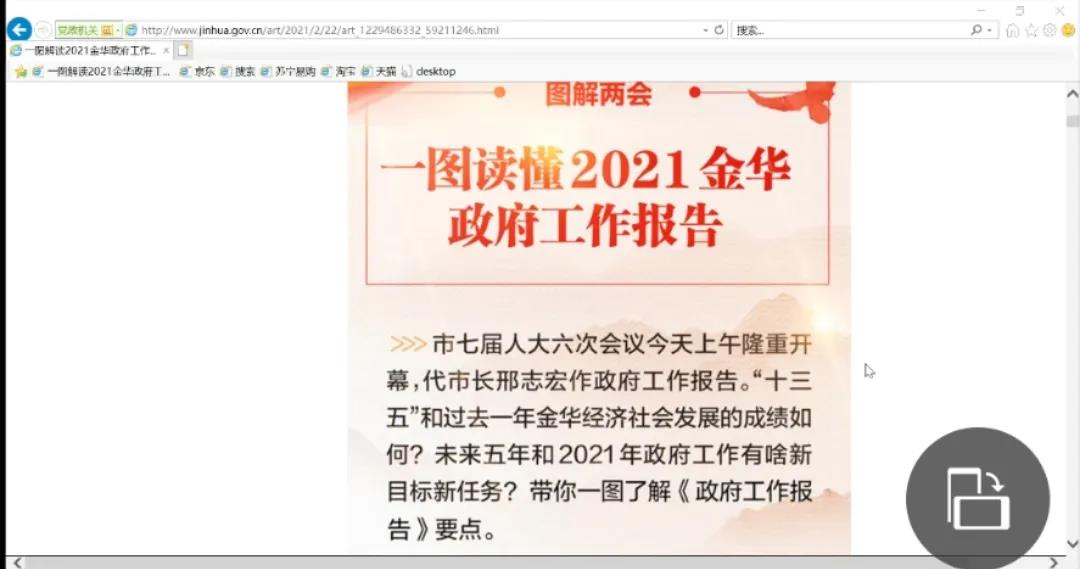 邓芬同志领学金华市七届人大六次会议、金华市政协七届五次会议精神。根据2021年金华政府工作报告,重点学习了建设国家创新性城市注入数字赋能新动力等九项“十四五”时期的主要目标任务,全力以赴做好常态化疫情防控、开展人才科技攻坚行动等“十四五”开局工作。