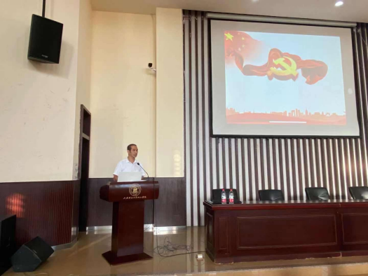 在金融系教工党支部组织委员赵燕萍领誓下,参加活动的全体党员重温入党誓词。随后,教工支部吴后宽老师分享党史学习心得体会。