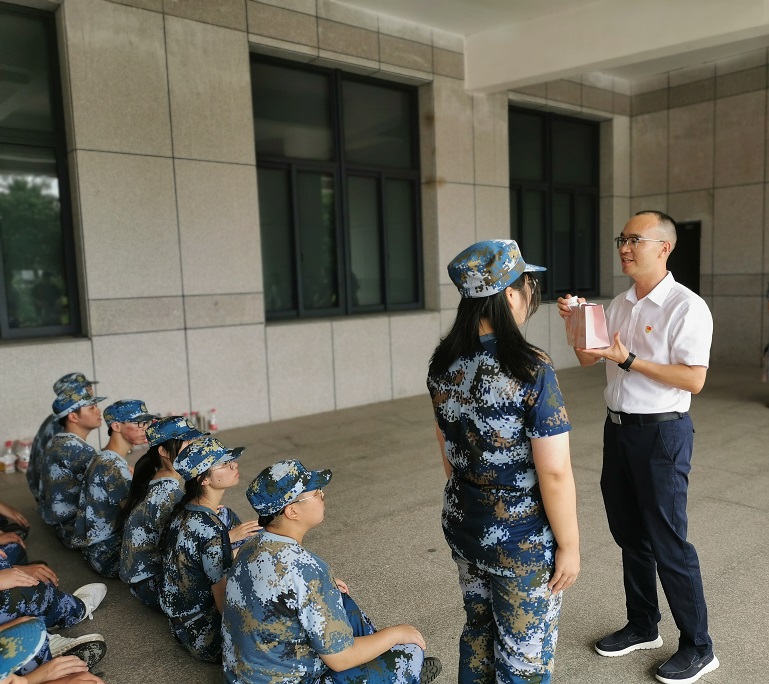 9月20日下午,学院党委委员、组织部部长张正亮、统计系副主任武斌、统计系党总支副书记吴京京、新生辅导员及班主任一行走访军训场,看望我系2021级新生及军训教官。