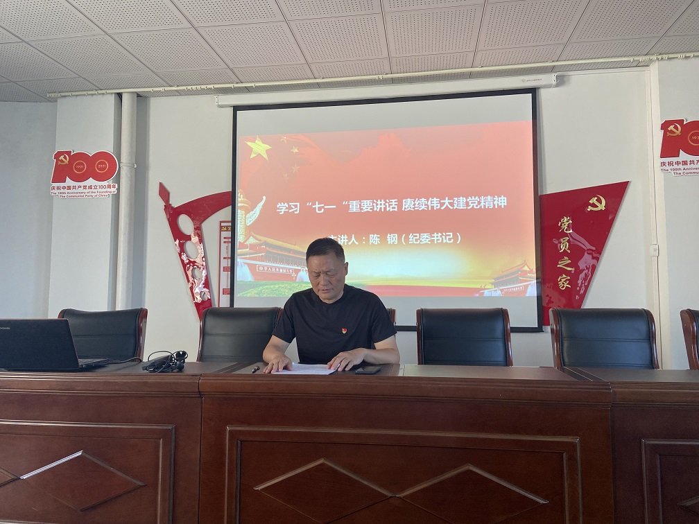 首先,陈书记带领在座党员再次回顾了习近平总书记在庆祝中国共产党成立100周年大会上的讲话。他指出今天的中国共产党已团结带领中国人民踏上了实现第二个百年奋斗目标的新道路,要取得高质量发展,就必须在思考和不断学习“七一”重要讲话精神,并从中寻找创新点,在创造性实践的基础上,不断学习,不断探索,不断完善。要深刻领会习近平总书记重要讲话精髓,从“七一”重要讲话中寻找新思路,制定新举措,牢牢把握新发展阶段、新发展理念、新发展格局的实践要求,更加突出创新驱动,开创第二个百年奋斗目标新局面。