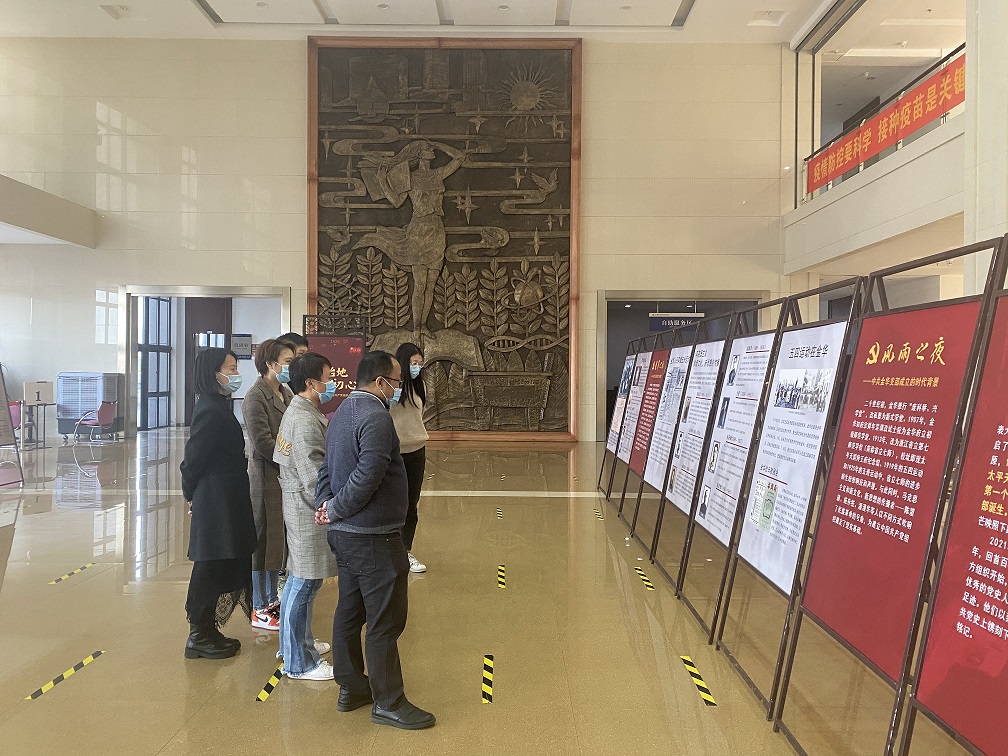 为庆祝建党百年,牢记红色记忆,进一步加强党史学习教育,11月12日下午两点,金融系党总支书记徐旭水携金融系教工支部党员们赴学院图文信息中心大厅参观“如始地、守初心”为主题的金华地区第一个中国共产党组织成立史巡展。本展览于2021年11月8日—2021年11月14日在学院展出。