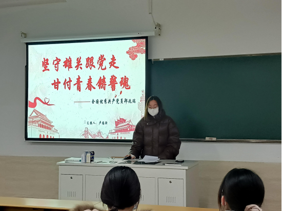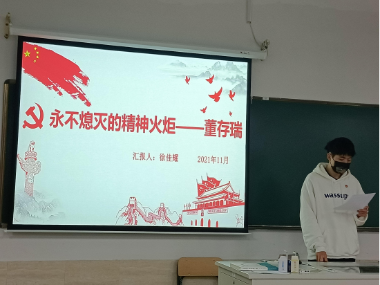 为进一步激励同学顽强奋斗、无私奉献的决心和意志。在11月24日晚上18:30于7-111教室,由卢雅斯同志和徐佳耀同志主持开展了会计系学生党支部职能部门的夜学会第五讲,一起学习了郑兆瑞、董存瑞等革命斗士们敢于牺牲的故事。