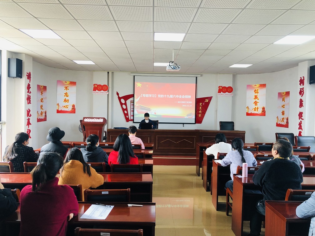 11月19日中午,会计系教工党支部组织召开《党的十九届六中全会精神》主题党课,由支部书记王金平同志传达会议精神。