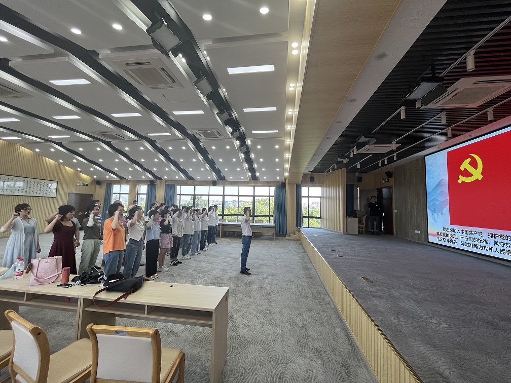 在活动最后,全体党员教师重温了入党誓词,党总支副书记为上半年过政治生日的党员同志颁发了党员政治生日贺卡,要求大家时刻牢记党员身份,深刻认识“两个确立”的决定性意义,不断增强“四个意识”、坚定“四个自信”、做到“两个维护”,在工作生活中积极发挥先锋模范作用。