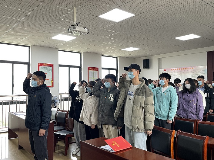 学生党员宣读入党誓词,表示自己愿意承担责任,以及对党的坚定信念和为党的事业奋斗终身的决心。