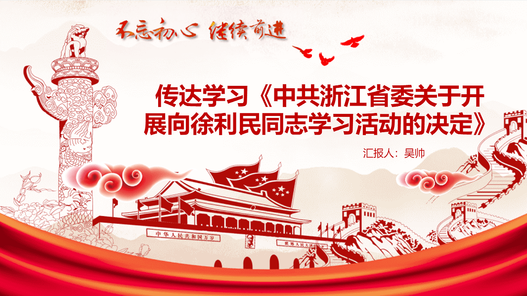 会议第四项,由吴帅同志传达学习《中共浙江省委关于开展向徐利民同志学习活动的决定》。吴帅同志从四个方面讲述徐利民同志的先进事迹,使党员同志深刻牢记:务必将小我融入大我,要攻坚克难、坚守宗旨、牢记使命,实现自身价值,有服务大局的政治担当。