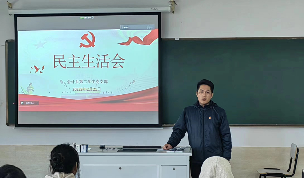 2023年2月21日12:30,会计系第二学生党支部在7幢412教室开展“党建统领谋新篇,实干争先开新局”主题党日和民主生活会。本次主题党日和民主生活会由温永琪同志主持。