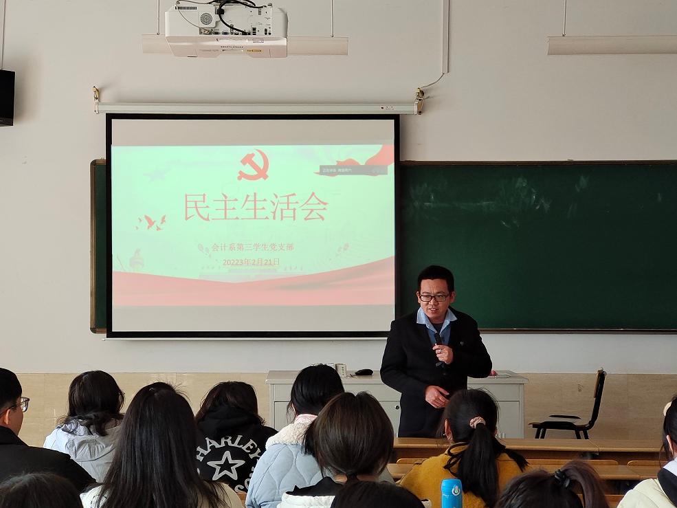 2023年2月21日,会计系第三学生党支部于教室7-413开展以“党建统领谋新篇,实干争先开新局”为主题的支部学习以及民主生活会,本次活动由姚一莎同志主持,以下是几位同志的分享。