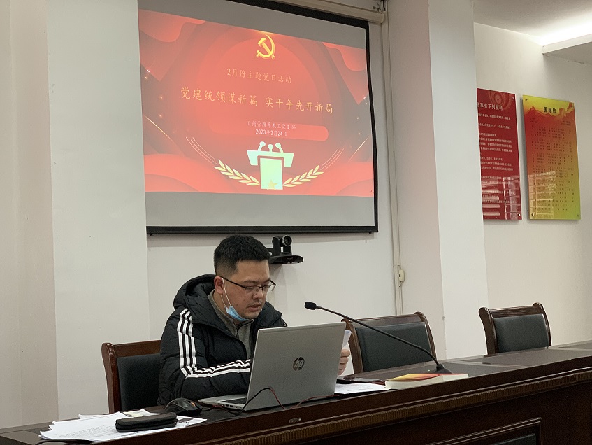 2月24日中午,工商系教工党支部以“党建统领谋新篇,实干争先开新局”为主题于党员之家开展主题党日活动。活动由教工支部组织委员江潇主持。