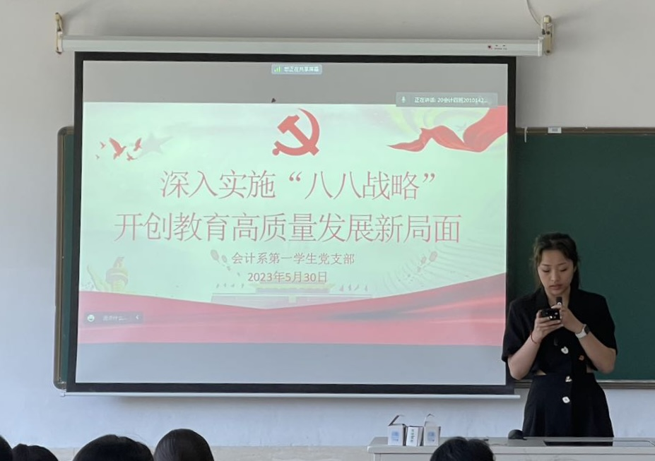 2023年5月16日中午12:30,会计系第一学生党支部于教室7-208开展“大兴调研之风,打牢主题教育基础”主题微党课,由赵月婷同志主持,沈从周同志、潘瑞同志、吴佳于同志担任主讲,以下是三位同志的分享。