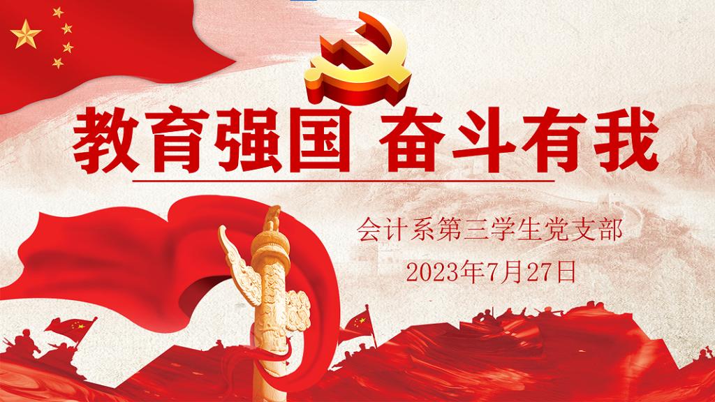 2023年7月27日,会计系第三学生党支部在线上开展“教育强国,奋斗有我”微党课,本次微党课由郭阳同志主持,以下是潘雨琪同志、董海鑫同志、史雨梦同志和陆锦艳同志的分享。