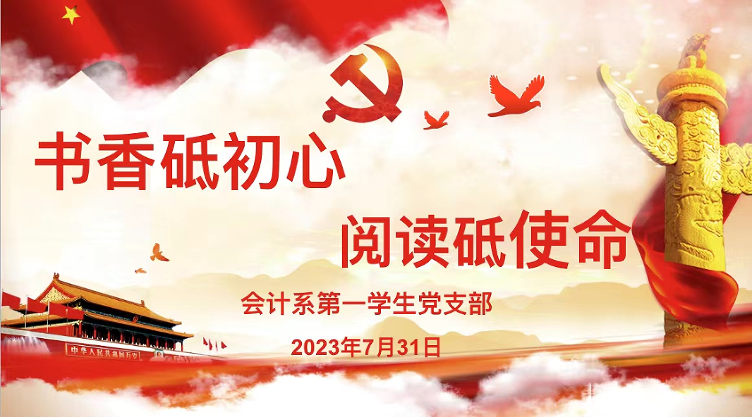 2023年7月31日,会计系第一学生党支部于线上开展“书香砥初心,阅读砥使命”读书分享会,本次读书分享会由张裕恒同志主持,林佳梅同志、叶颖同志担任主讲,以下是两位同志的分享。