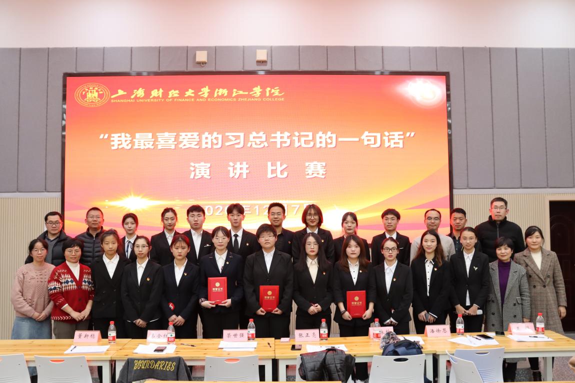 为深入学习宣传贯彻党的十九届五中全会精神,用青春的力量传播习近平新时代中国特色社会主义思想,12月7日,学院党委在教学楼8幢105岛屿教室举办了“我最喜爱的习近平总书记的一句话”演讲比赛,各系学生党支部推选出的17名选手参加了本次比赛,现场60余名师生代表观看了比赛。
