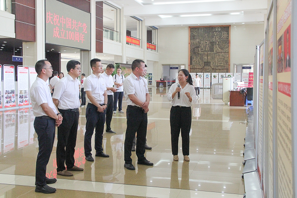 最后,学院领导班子成员和教工党员参观了“回望辉煌历程 传承初心使命”党史学习教育和庆祝建党百年支部风采展。公共基础部党支部书记李宛荫带领参观人员以中国共产党历次全国代表大会为序,共同回顾了中国共产党从艰难探索到开拓创新的辉煌历程。结合庆祝建党百年支部风采展的参观,现场党员干部在党史学习教育中接受了一次深刻的精神洗礼。