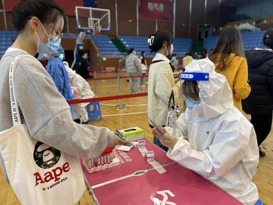 有幸参加了学院核酸检测志愿者活动,我们的主要工作是用手机采集受检测师生信息。三个小时一刻不停歇地采集了近七百条信息。让我体会到大白们的每天不停检测的辛苦,向大白们致敬!作为一名基层党员,要将责任扛在肩上,担当记在心头,哪里需要就到哪里。希望疫情早日结束!