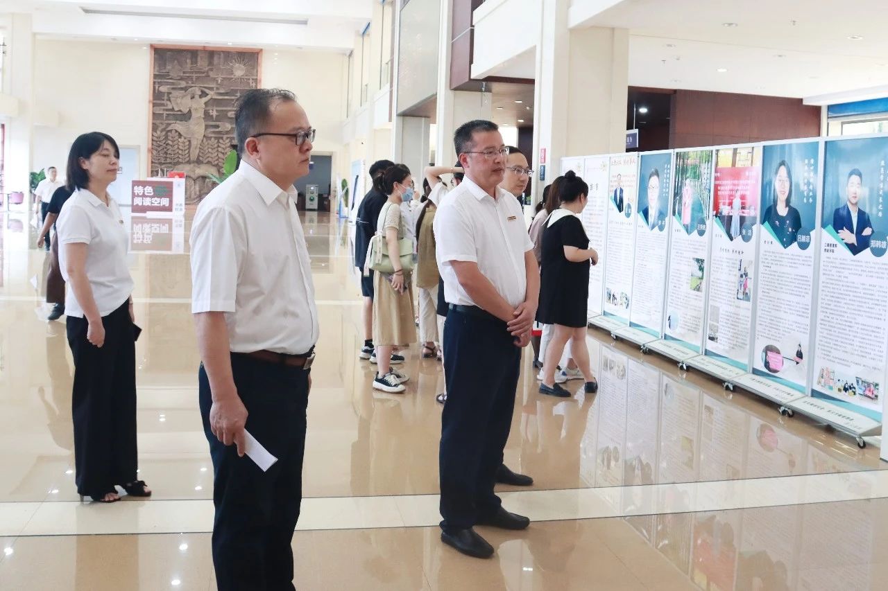 9月7日下午,学院领导班子成员和各党总支(直属党支部)负责人以及部分教职工代表前往图书馆大厅,参观“躬耕教坛,强国有我”——学院师德师风优秀教职工事迹展。