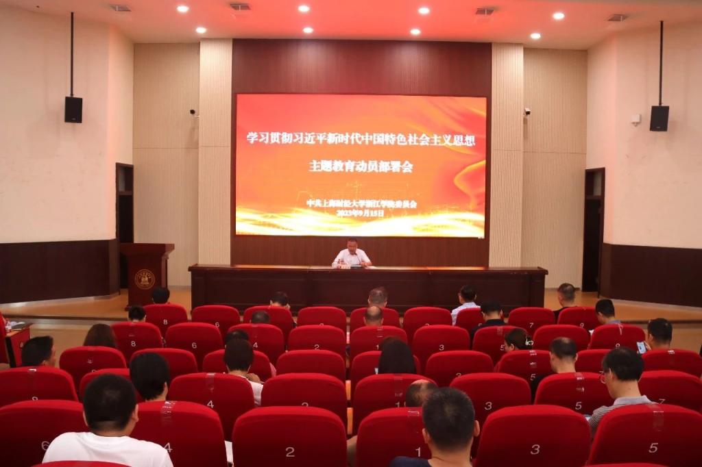 会议要求,要坚持悟深悟透,深刻认识学习贯彻习近平新时代中国特色社会主义思想主题教育的重大意义。要从政治引领的高度,深刻认识深入开展主题教育是统一全党思想意志行动、始终保持强大凝聚力战斗力的必然要求;要从实践需要的高度,深刻认识开展主题教育是推动全党积极担当作为、不断开创事业发展新局面的必然要求;要从伟大工程的高度,深刻认识开展主题教育是深入推进全面从严治党、以党的自我革命引领社会革命的必然要求;要从财浙担当的高度,深刻认识开展主题教育是牢记习近平总书记关怀嘱托、谱写财浙改革发展新篇章的必然要求。要坚持笃实笃行,准确把握学习贯彻习近平新时代中国特色社会主义思想主题教育的目标要求。要把理论学习、理论武装贯穿始终,做到入心入脑,原原本本系统学、循迹溯源创新学、上下联动深入学;要把调查研究、解决问题贯穿始终,做到走深走实,坚持问题导向调研、坚持深入一线调研、坚持围绕调研成果交流;要把实干争先、促进发展贯穿始终,做到提速提质,实施开展平稳转设护航、党建筑基统领、人才培养提质、干部人才强校、校地校企融合、治理能力培优等“六大行动”,以推动高质量发展的新成效检验主题教育成果;要把检视整改、建章立制贯穿始终,做到见行见效,深查细照列出清单、深刻严格检视剖析、深入有效落实整改、推动抓好建章立制。要坚持落地落实,扎实推动学习贯彻习近平新时代中国特色社会主义思想主题教育见行见效。要加强组织领导,各工作组要各司其职、齐抓共管,形成工作合力;要注重科学统筹,坚持主题教育与推进中心工作相结合,坚持理论学习与实践检验相结合,坚持问题导向与整改落实相结合;要力戒形式主义、官僚主义,落实好中央、省委和市委部署安排,抓好主题教育规定动作,把功夫下在解决问题、改进工作上;要加强宣传引导,充分发挥官网、官微等校园主流媒体作用,注重听取师生群众评价,以师生群众满不满意评判工作质效,持续营造主题教育的良好氛围。