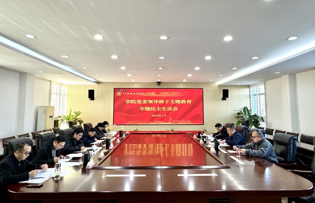 1月17日上午,学院党委领导班子在行政楼28幢320会议室召开学习贯彻习近平新时代中国特色社会主义思想主题教育专题民主生活会。市委主题教育办第四联络组成员、金东区检察院金义新城检察室三级警长吴德到会指导,学院领导班子成员参加会议,会议由党委书记王建新主持。